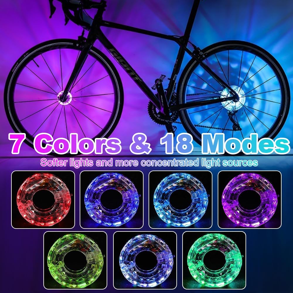 Dostępne w różnych jaskrawych kolorach, w tym czerwonym, zielonym i niebieskim, z ekscytującym 7-kolorowym trybem automatycznym i 18 dynamicznymi trybami oświetlenia. Idealne do personalizacji roweru, a jednocześnie poprawiające widoczność i bezpieczeństwo podczas jazdy o zmierzchu lub w nocy. Odpowiednie dla dzieci, chłopców, dziewcząt, nastolatków i dorosłych w każdym wieku! Przygotuj się na stylową jazdę!